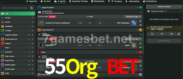 O 55Org Bet oferece uma grande seleção de opções de apostas em e-sports com probabilidades competitivas